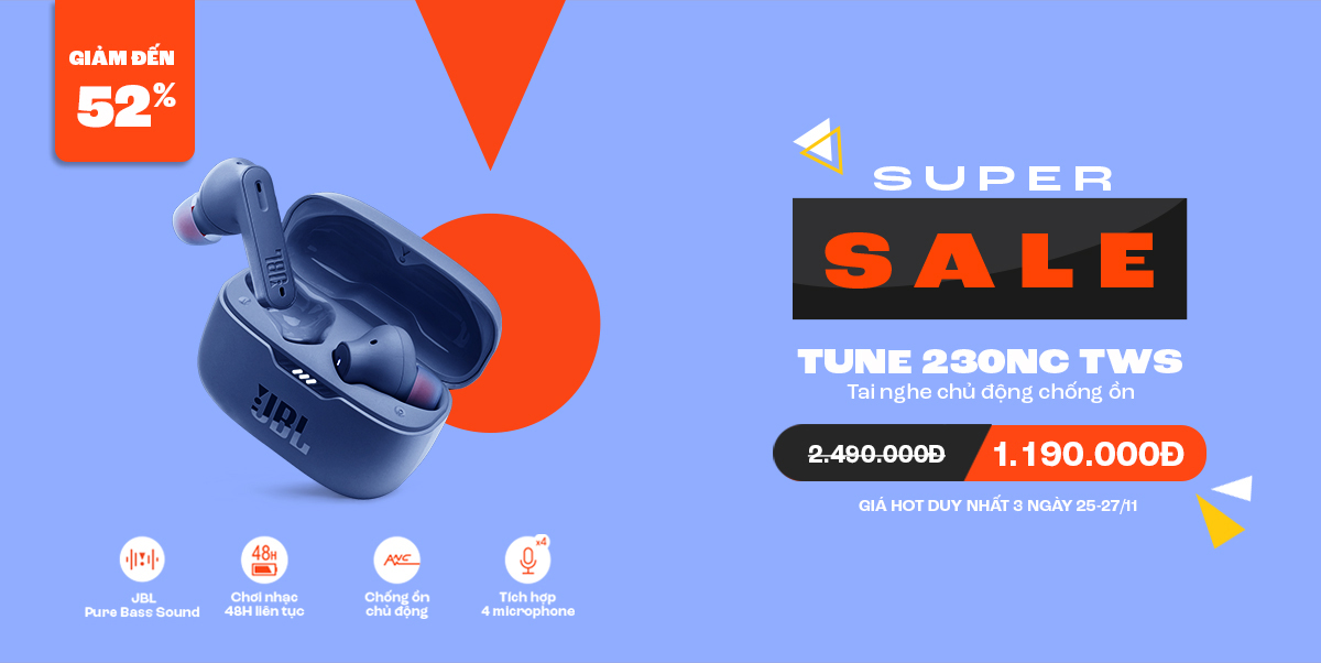 Duy nhất vào Black Friday 25 - 27/11/2022, JBL Tune 230NC chỉ còn 1.190.000 đồng
