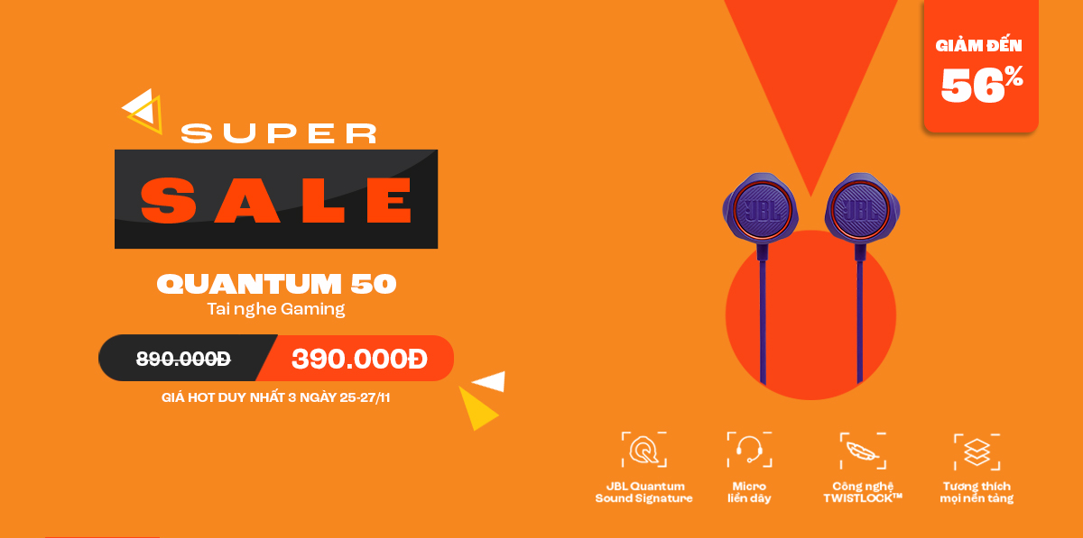 Duy nhất vào Black Friday 25 - 27 11.2022, JBL Quantum 50 chỉ còn 390.000 đồng