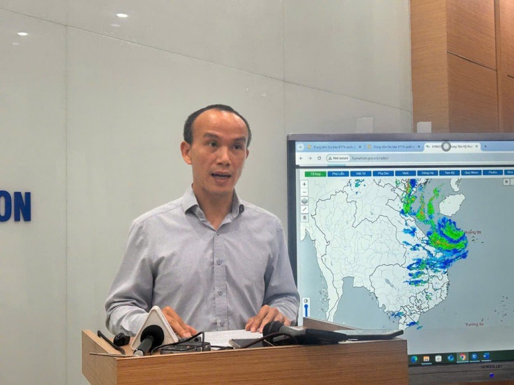 Ông Hoàng Phúc Lâm, Phó giám đốc Trung tâm Dự báo Khí tượng thuỷ văn quốc gia thông tin về bão số 5.
