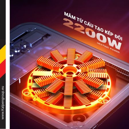 Bếp từ Kalpen ICK-1618 trang bị mâm từ kép đôi cho hiệu suất gia nhiệt nhanh mà không tiêu tốn nhiều điện năng. Mâm từ có cấu tạo kép đôi gồm số sợi từ 18 - 22 sợi, số vòng quấn từ 17 - 22 vòng, số thanh hướng từ 5 - 7 thanh sẽ cho khả năng bắt từ nhanh, tập trung vào trung tâm của nồi giúp nấu ăn nhanh hơn.