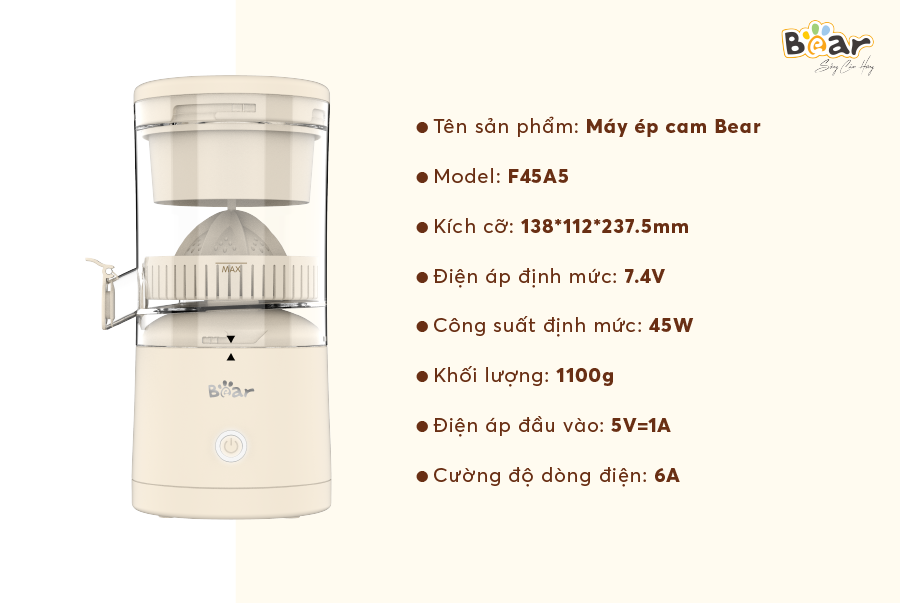 Thông tin chi tiết của máy vắt cam, ép trái cây tự động Bear ZZJ-F45A5: