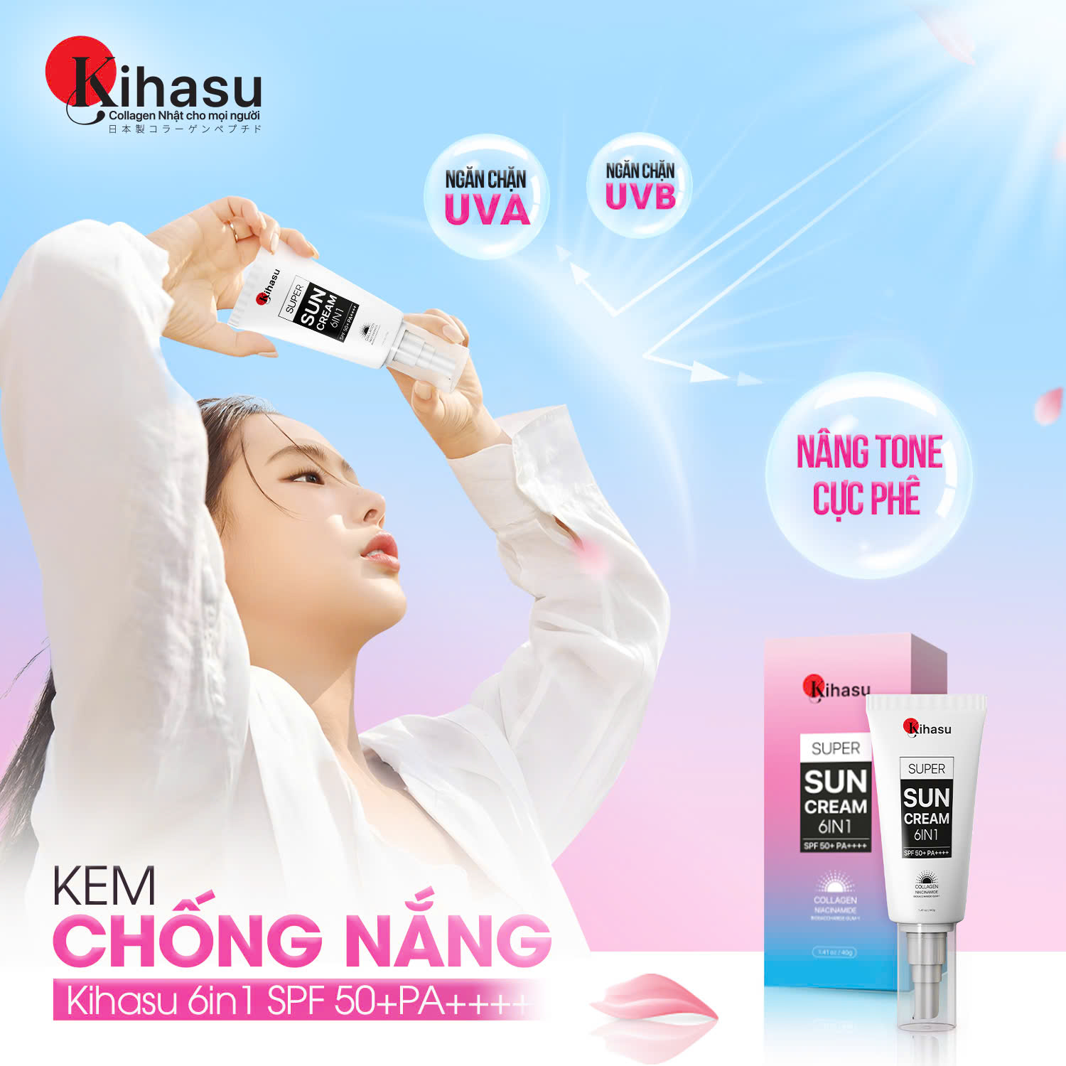 Kihasu Super Sun Cream 6 IN 1 SPF 50+ PA++++ Đột Phá Công Nghệ Chống Nắng “Tất Cả Trong Một”
