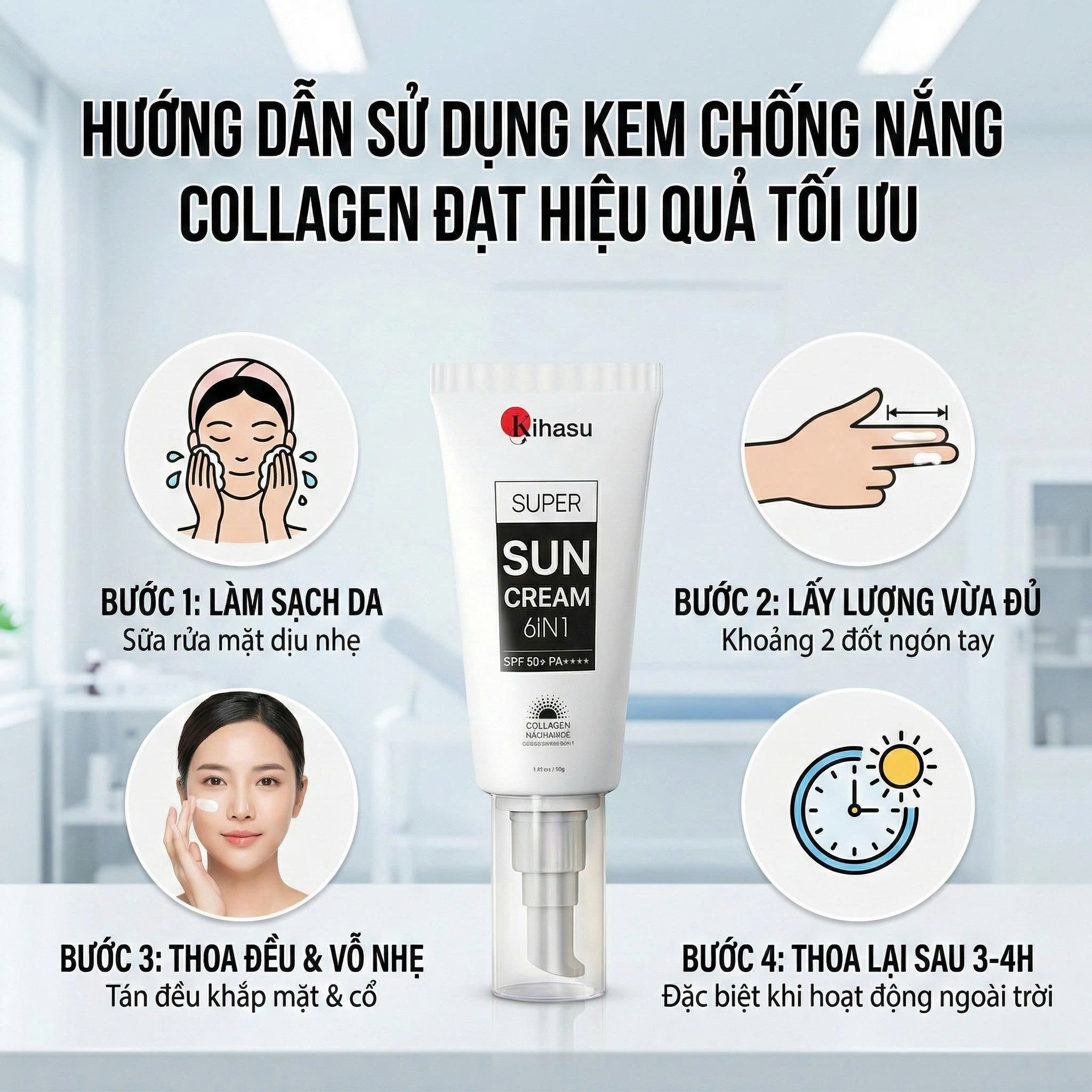 Việc sở hữu một siêu phẩm như Kihasu Super Sun Cream 6 IN 1 SPF 50+ PA++++ mới chỉ là 50% hành trình bảo vệ nhan sắc. 50% còn lại quyết định ở cách bạn “kỹ luật” và thực hiện đúng kỹ thuật thoa kem hàng ngày.