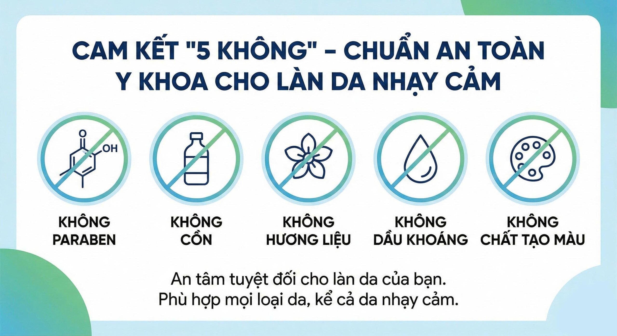 Cam Kết “5 KHÔNG” – Chuẩn An Toàn Y Khoa Cho Làn Da Nhạy Cảm