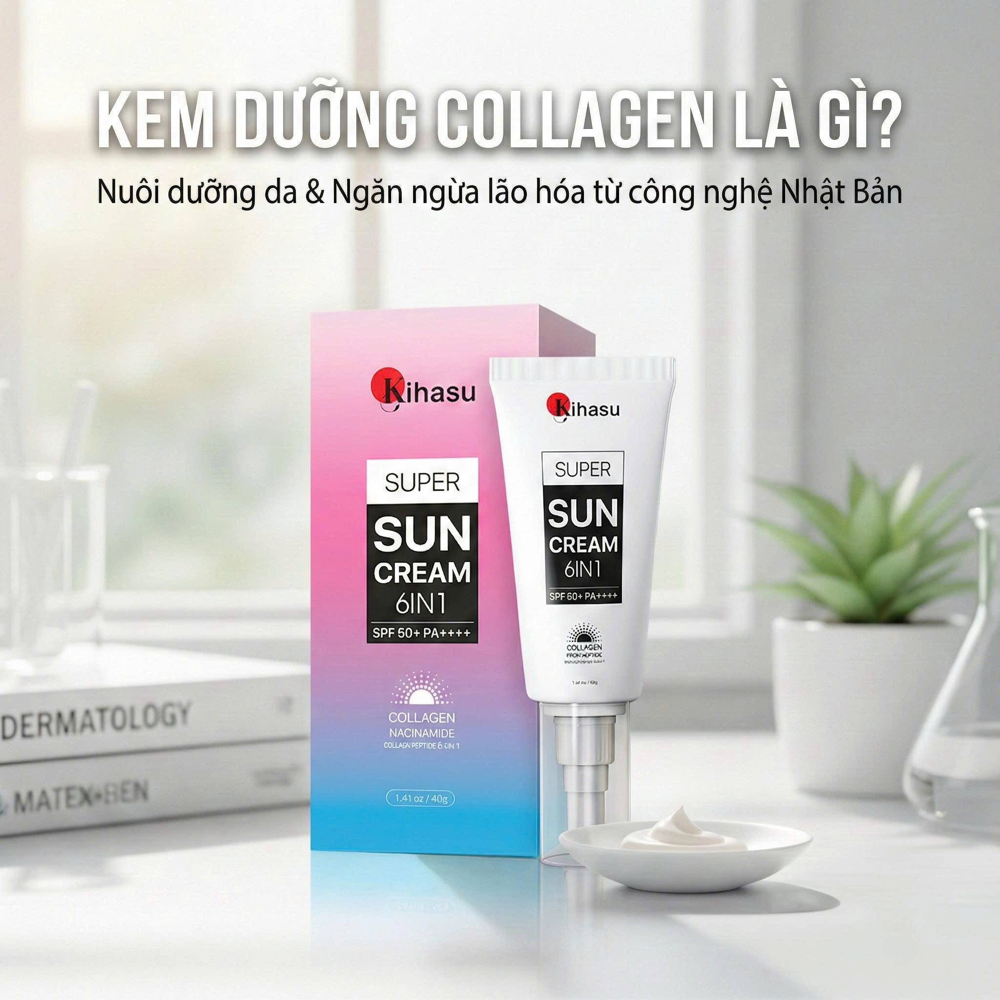 Hệ quả: Khi “giàn giáo” sụp đổ, làn da sẽ mất đi bệ đỡ, dẫn đến sự xuất hiện của các rãnh cười sâu, vết chân chim và lỗ chân lông to. Đó là lý do vì sao việc chỉ chống nắng thông thường là chưa đủ. Bạn cần một giải pháp đột phá như Kihasu Super Sun Cream 6 IN 1 SPF 50+ PA++++ – vừa ngăn chặn “chiếc kéo” MMPs, vừa bổ sung Collagen Peptide để bù đắp những đứt gãy kịp thời.